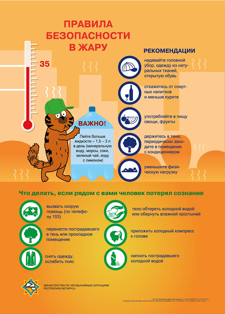 Не ныряйте с разбегу, заходите в воду постепенно, чтобы дать телу привыкнуть к перепаду температур и избежать спазмов кровеносных сосудов. Если вы много времени провели на солнце, не спешите: отойдите в тень, остыньте и только потом идите плавать. Не стоит купаться натощак или сразу после еды. Делать это лучше через полтора часа после приема пищи. Ни в коем случае не заходите в воду во время грозы! Если плаваете плохо, держитесь поближе к берегу, чтобы в любой момент коснуться дна ногами.
