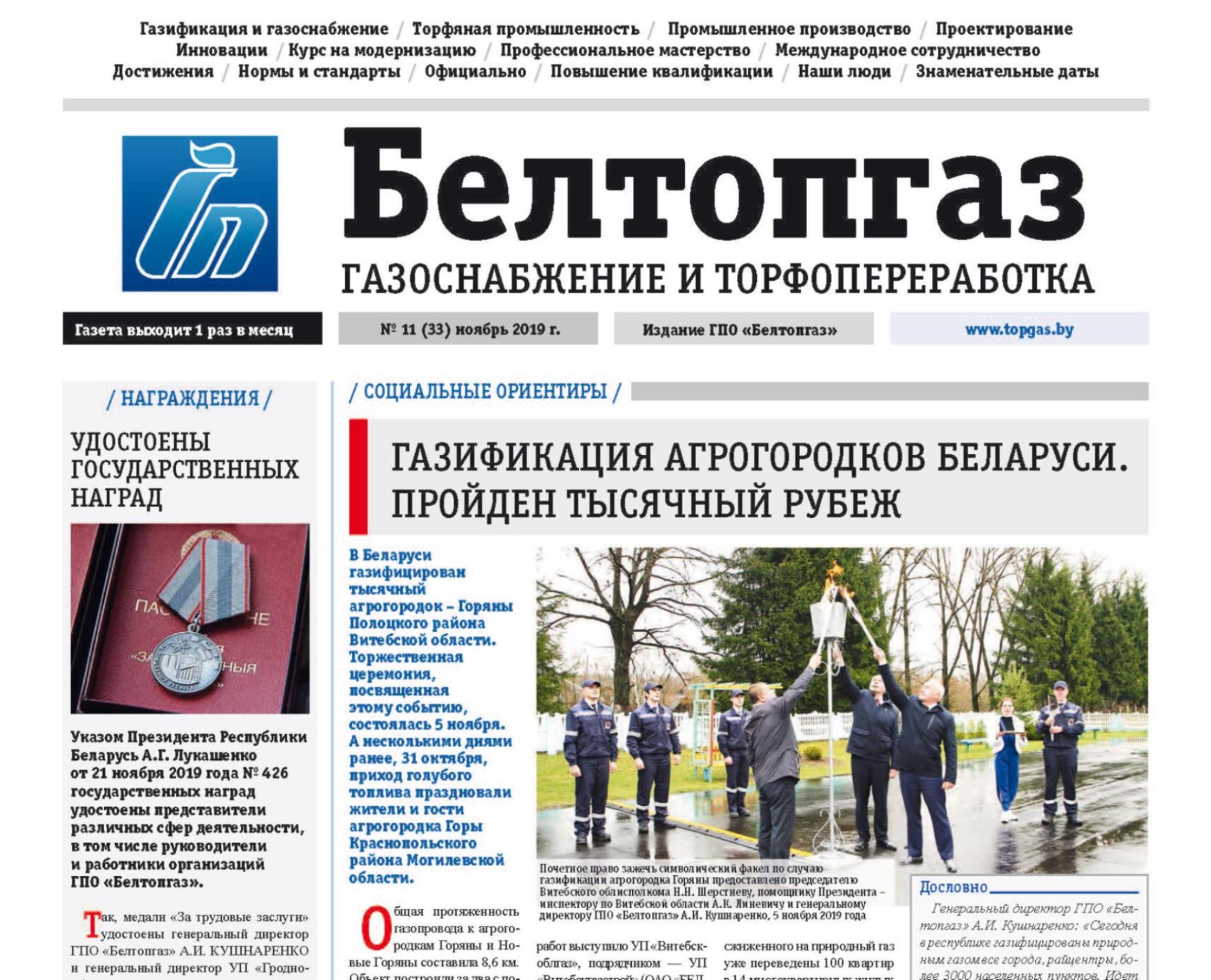 «БЕЛТОПГАЗ. Газоснабжение и торфопереработка» № 11 (33), 2019