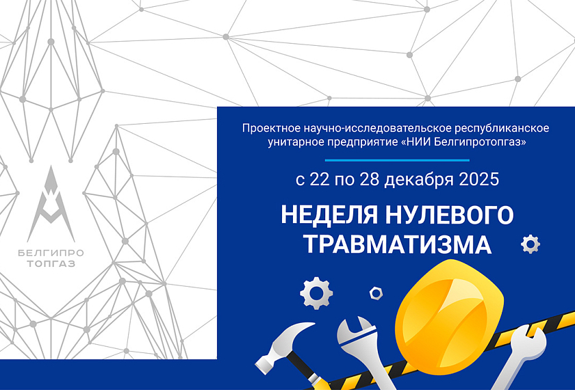 С 22 по 28 декабря 2025 года в государственном предприятии «НИИ Белгипротопгаз» пройдет «Неделя нулевого травматизма».