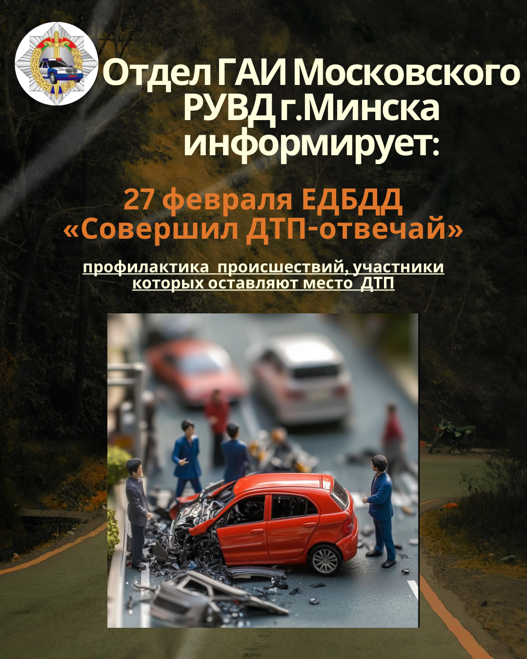 27 февраля Госавтоинспекция проведет Единый день безопасности дорожного движения под девизом «Совершил ДТП - отвечай!», профилактика происшествий, участники которых оставляют место ДТП