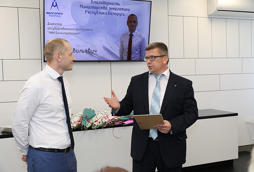 Награды работникам вручил руководитель института Д.Р. Мороз. Он поблагодарил весь коллектив НИИ Белгипротопгаз за продуктивную работу и высокий профессионализм. Пожелал всем выдержки и мудрости в принятии важных решений, успешного выполнения намеченных планов и реализации новых проектов, удачи, бодрости духа и оптимизма.