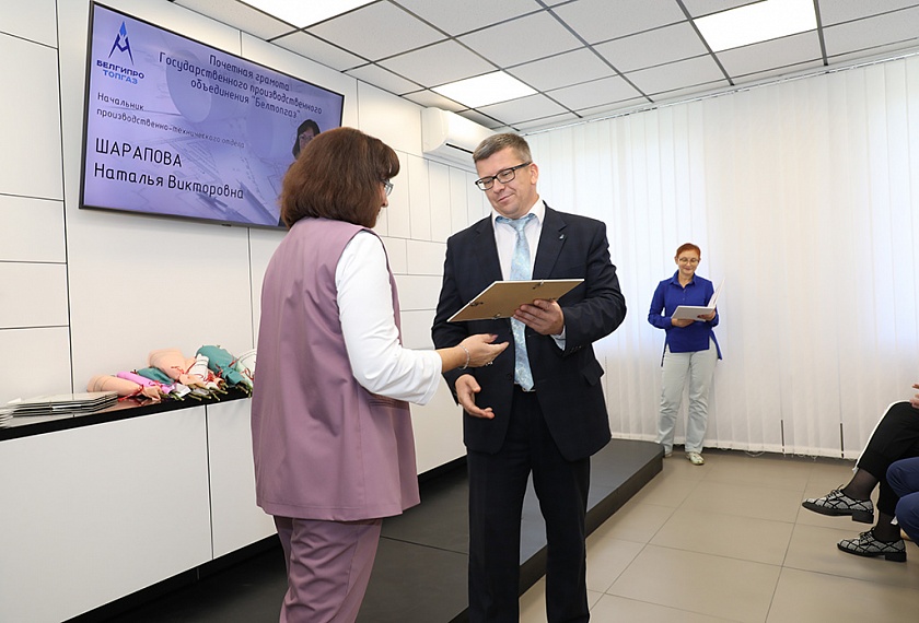 Так, Почетной грамотой Министерства энергетики Республики Беларусь награждена главный инженер проекта бюро ГИПов О.Н. Пигальская. Благодарность Министерства энергетики Республики Беларусь объявлена директору НИИ Белгипротопгаз Д.Р. Морозу и главному специалисту теплоэнергетического отдела М.Н. Зосимовой. Почетной грамоты ГПО «Белтопгаз» удостоена Н.В. Шарапова, начальник производственно-технического отдела, Благодарности объединения – Е.В. Гринева, начальник группы электроснабжения, электрооборудования и электроосвещения отдела электротехнических работ.
